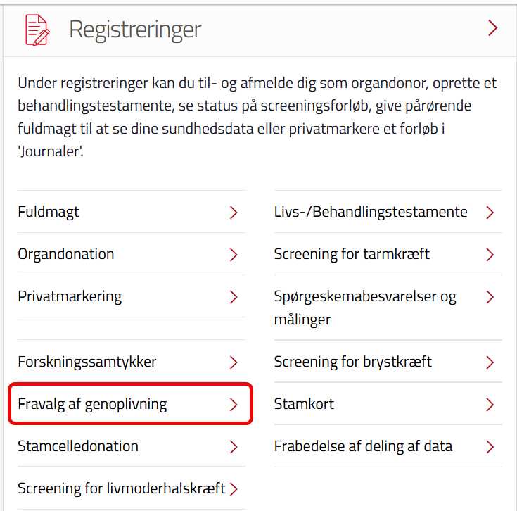 Det er ikke muligt for andre at registrere et fravalg for dig. Det gælder også for pårørende med en fuldmagt.
