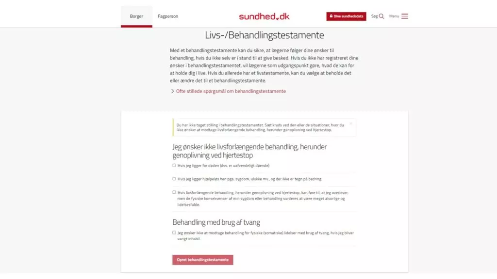Du kan også oprette et behandlingstestamente på www.sundhed.dk.