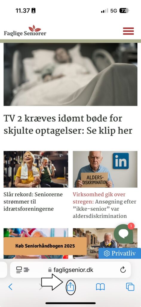 1 Åbn fagligsenior.dk i din Safari-browser.